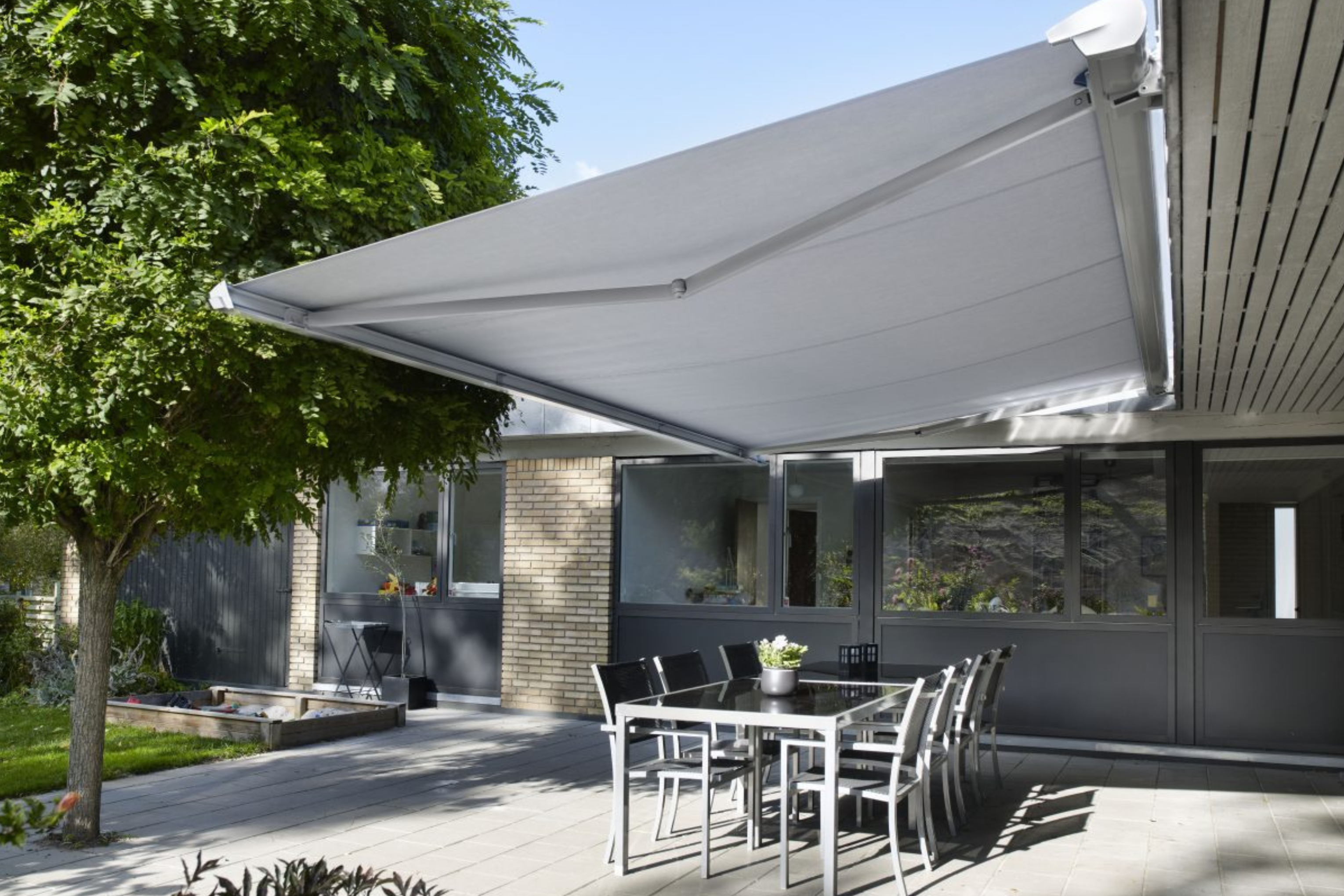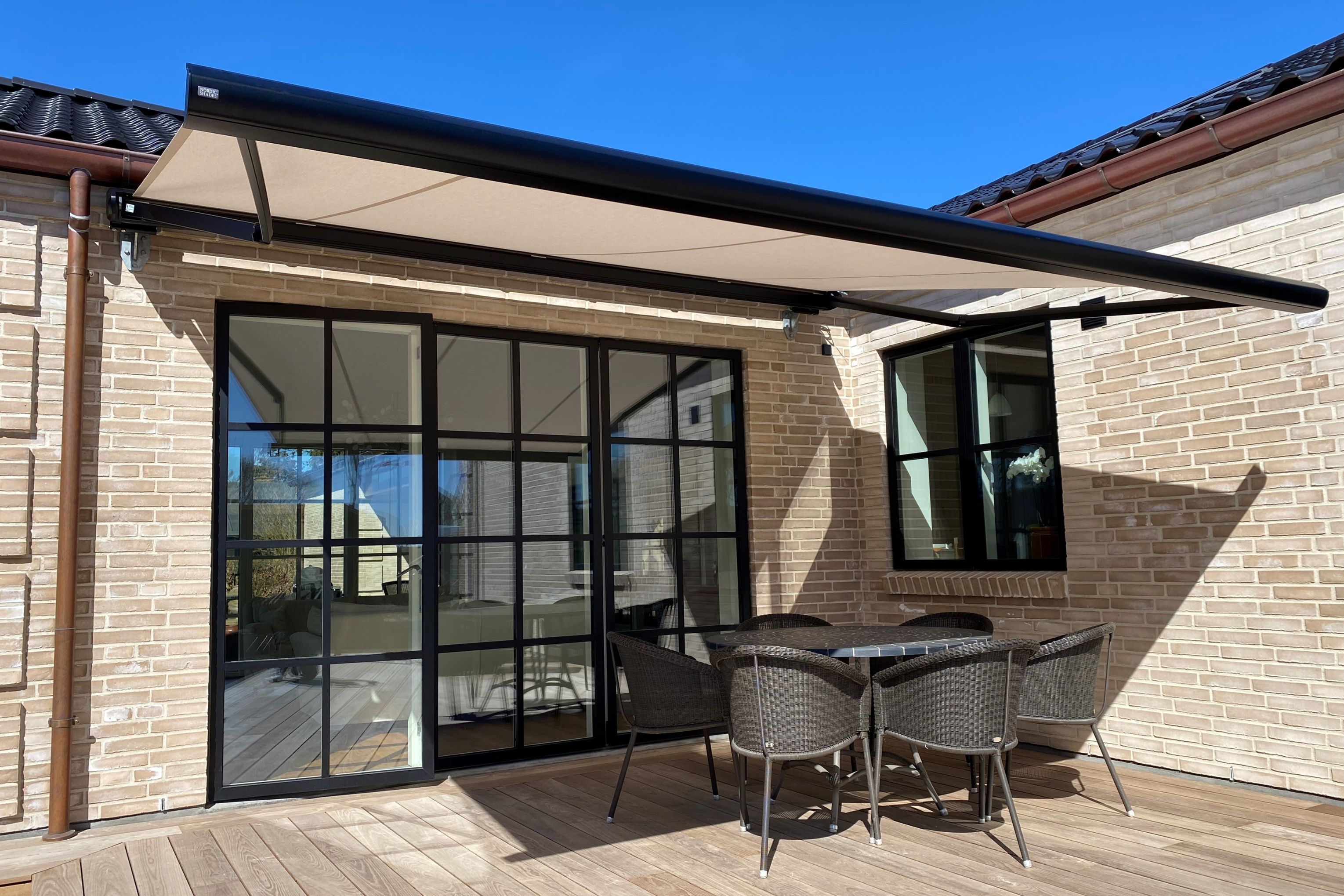 Oplev skræddersyet udendørs solafskærmning til både private hjem og erhverv. Vi skaber den perfekte balance mellem design og funktion, så du kan nyde uderummet i skygge og komfort – uanset om det er på terrassen, altanen eller ved butikken.