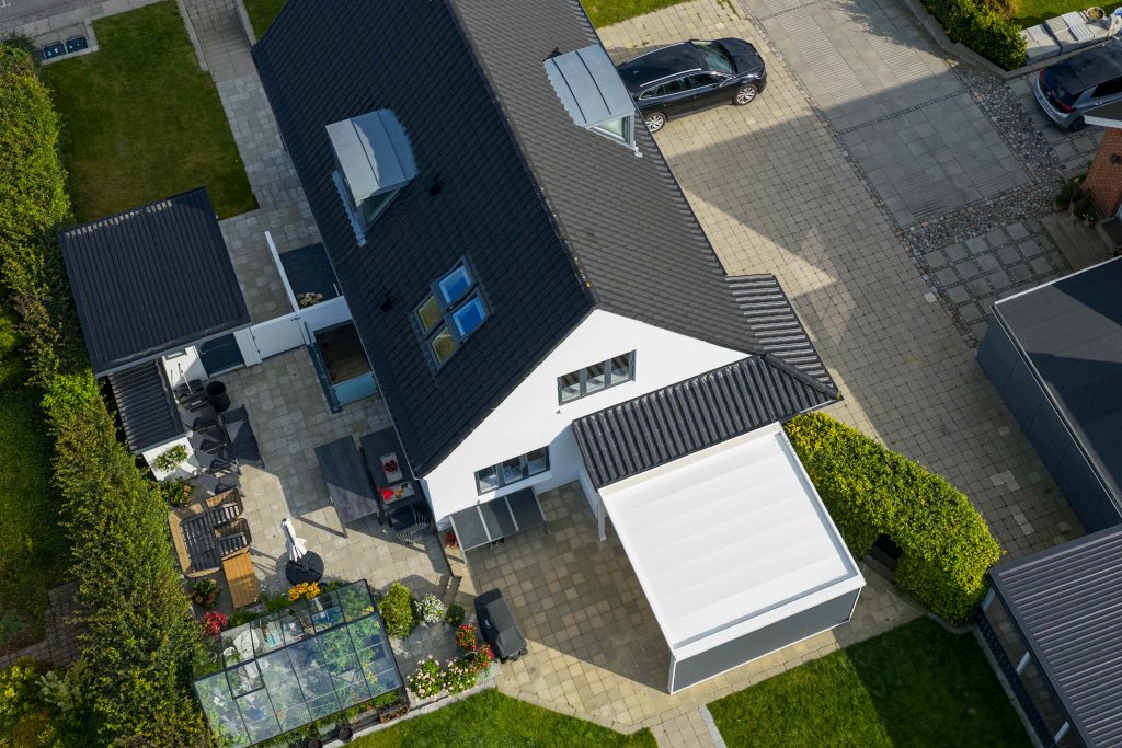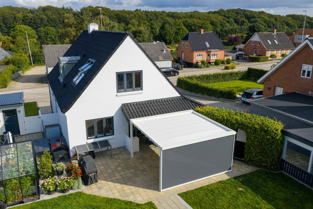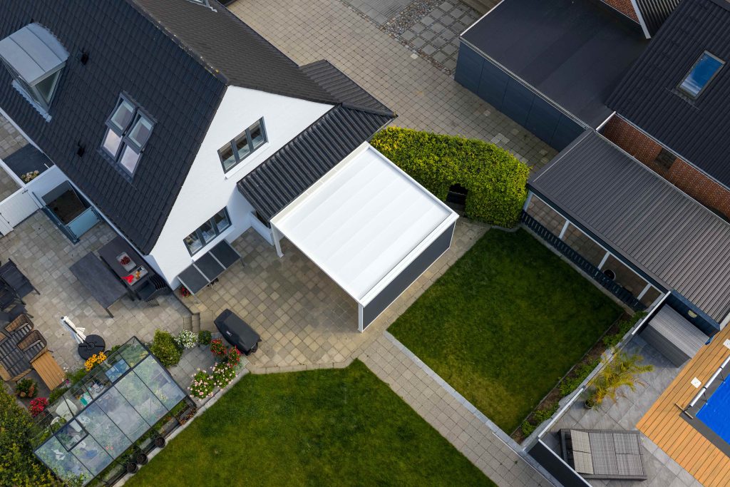 En pergola kombinerer funktionalitet og æstetik, så du får et stilfuldt uderum med beskyttelse mod både sol og regn. Den kan tilpasses med lameller eller stofdug og fås med motorstyring, så du nemt kan åbne eller lukke taget efter vejrforholdene.